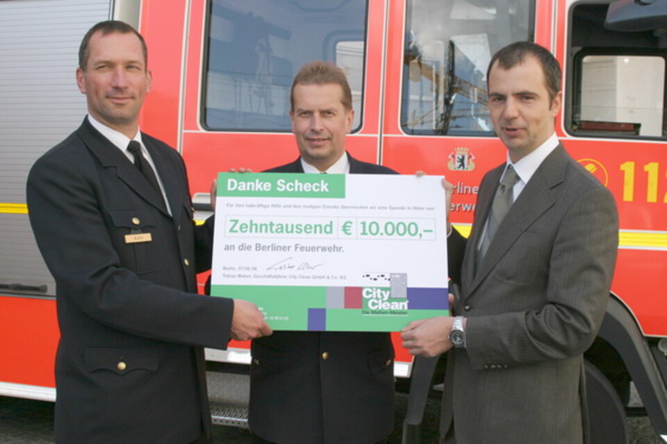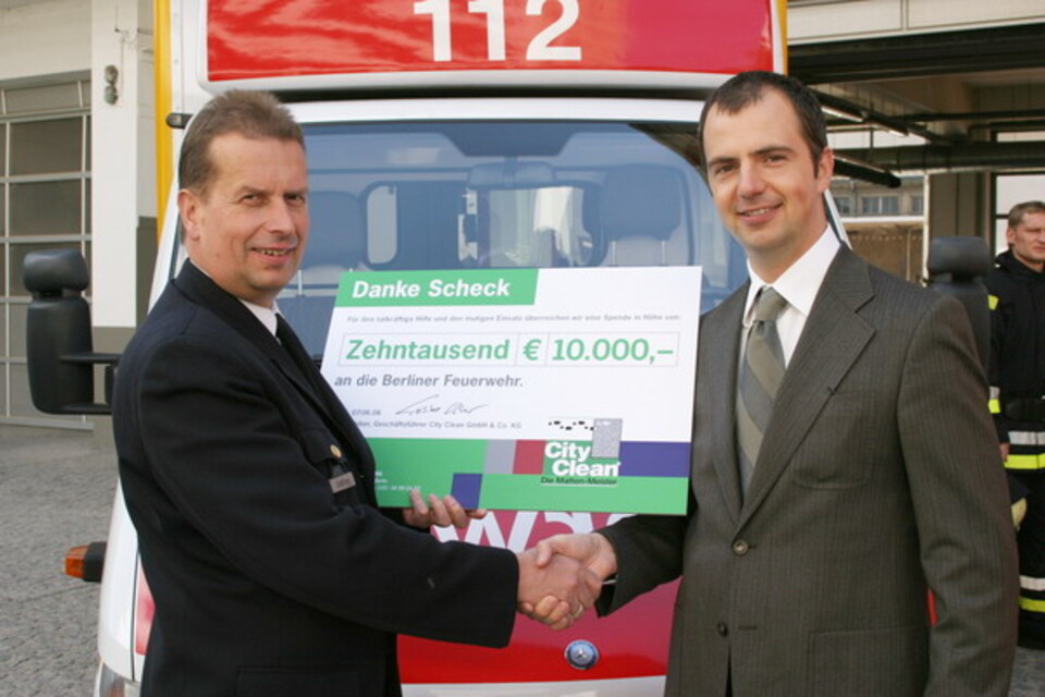 Weil sich der Brand nicht in die darunter liegende Etage ausbreiten konnte und zudem der Wasserschaden in Grenzen blieb, hat sich die dort ansässige Firma City-Clean mit einer großzügigen Spende an die Elisabeth-Schubert-Zink-Stiftung bedankt. Das oberste Ziel dieser Stiftung ist die Unterstützung der Feuerwehren in Berlin und Brandenburg.